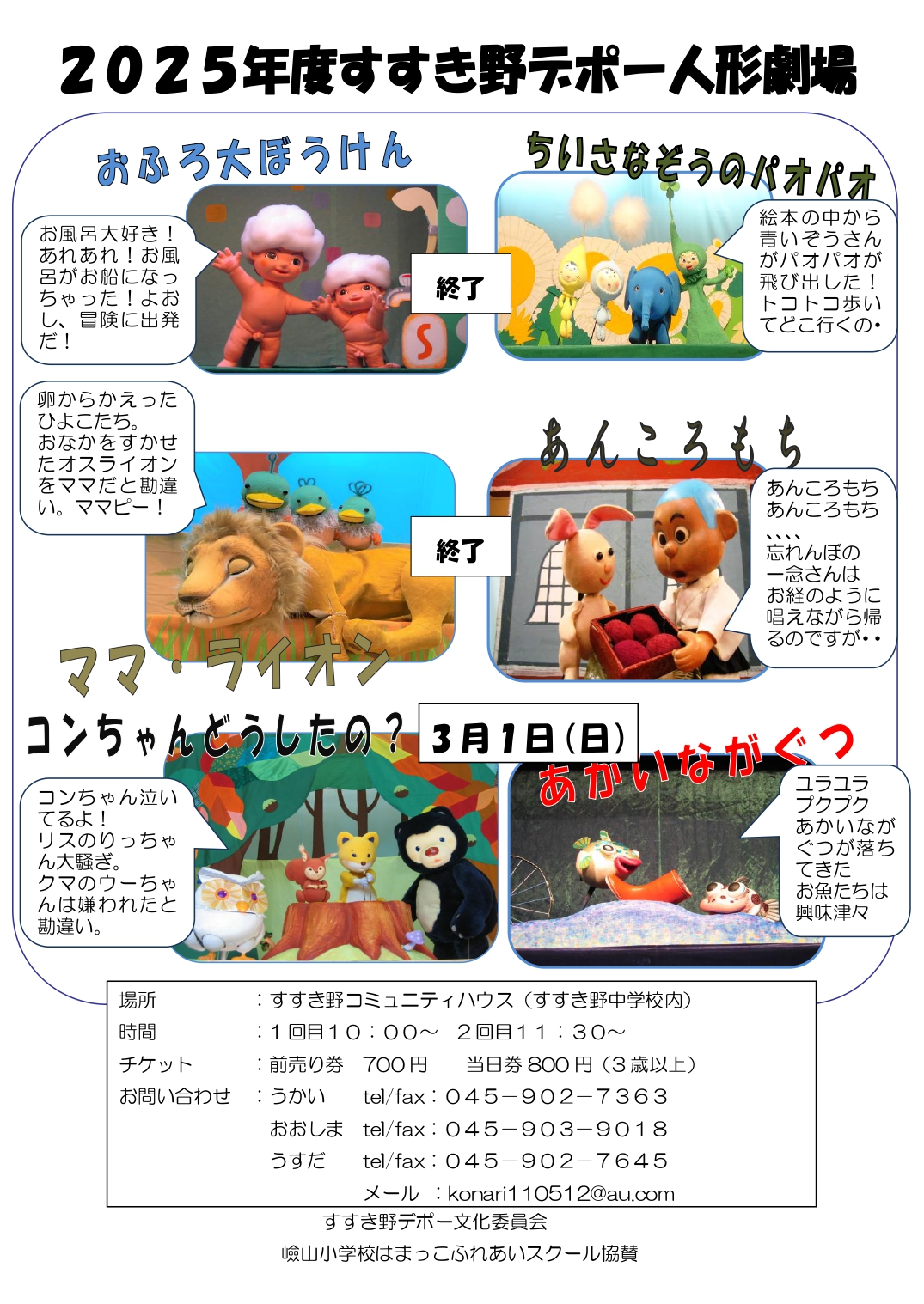 2025年度すすき野デポー人形劇場、すすき野コミュニティハウス(すすき野中学校内)公演に